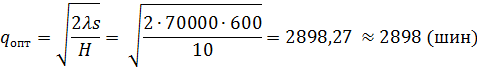 Годовая потребность машиностроительного завода в шинах марки Bridgestone В250 (175/70 R13 82H) составляет 70 000 шт., расходы на один заказ - 600 руб., издержки по содержанию запасов -10 руб. за шт. в год. Завод работает 300 дней в году. Доставка заказа осуществляется в течение трех дней.