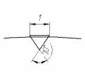 Для нанесения рифления выберите в Дереве модели – Плоскость ZY. Нажмите кнопку Эскиз. Укажите плоскость, на которую необходимо нанести рифление, выберите команды Инструменты эскиза – Геометрия – Отрезок и начертите один элемент прямого рифления как показано на рисунке 13. Согласно ГОСТ 21474–75 это треугольник с вершиной, направленной вниз, с углом при вершине 70º и основанием 1 мм (см. табл. 4).