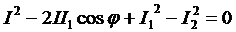 Из этого квадратного уравнения можно найти полный ток I, зная I1 и I2.