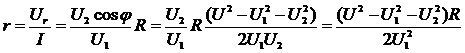 Дроссель соединен последовательно с активным сопротивлением R. Они присоединены к сети с переменным напряжением U. Падение напряжение на дросселе U2, на сопротивлении R - U1. Чему равно активное сопротивление r дросселя?