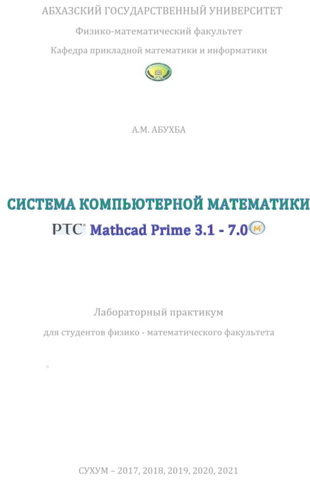 Система компьютерной математики Mathcad Prime 3.1 – 7.0. Лабораторный практикум. Для студентов физико – математического факультета / сост.: Абухба А.М. – Сухум: АГУ, 2017. Дораб. –2018, 2019,