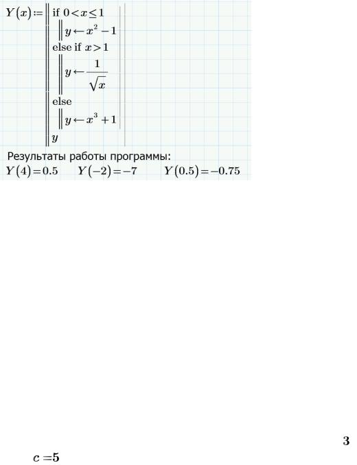 Примечание: Некоторые, несложные задачи на реализацию разветвляющегося вычислительного процесса можно решать и без использования вкладки Программирование. Для этого в Mathcad Prime имеется оператор условного ветвления . Оператор