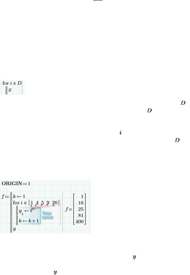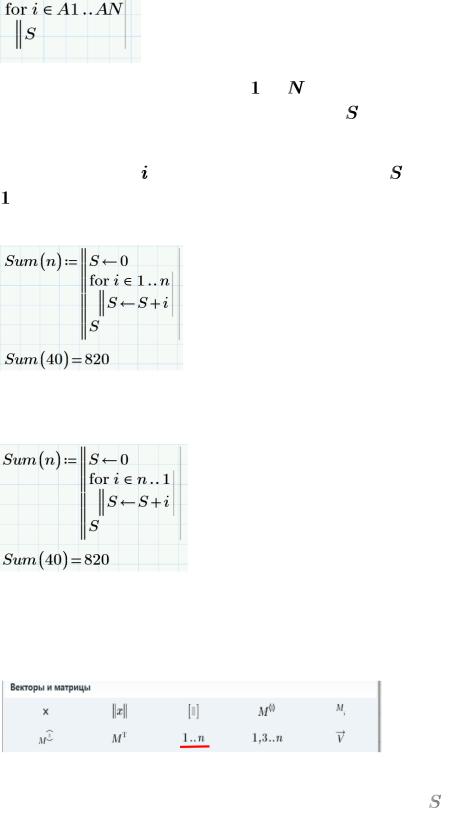 – начальное и конечное значения параметра цикла (границы диапазона), – оператор (ы) языка Mathcad Prime или по-другому тело цикла.