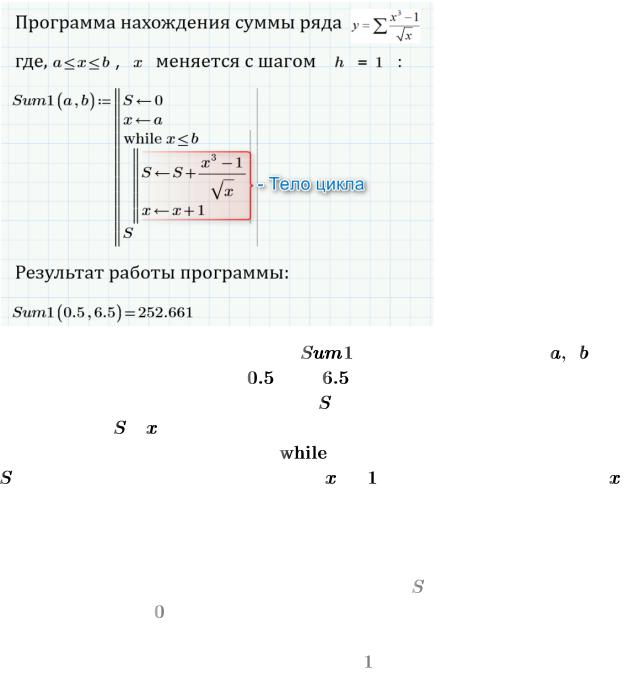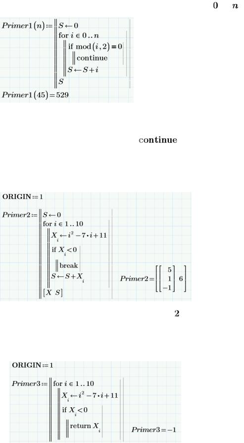 Также в Mathcad Prime предусмотрены операторы для пропуска текущей итерации цикла и перехода к следующей, выхода из циклов и программ: