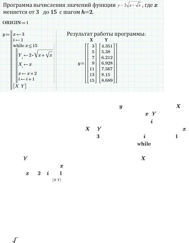 нахождение значений заданной функции, и из них формируется вектор – столбец , а также формируется вектор – столбец , состоящий из значений переменной ;. В теле цикла также происходит увеличение