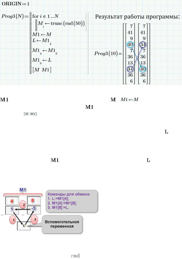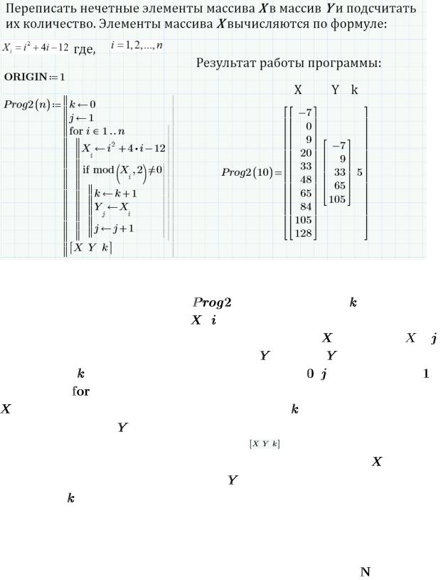 теле цикла , происходит формирование исходного вектора – столбца , подсчет количества нечетных элементов , а также формируется вектор – столбец . Вывод полученных результатов записан в виде