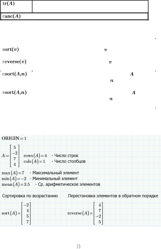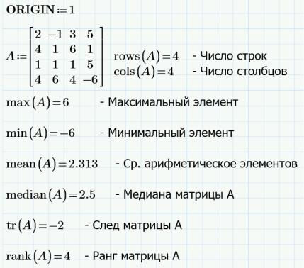 Кроме панели инструментов и пунктов меню для работы с матрицами, в Mathcad существуют специальные функции. Рассмотрим, наиболее часто используемые функции.
