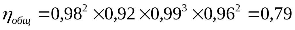 ηобщ=0,79 – общий КПД привода.