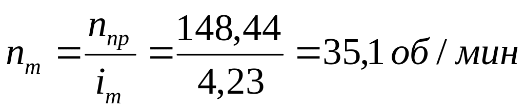 nв=35,1 об/мин – частота вращения приводного вала транспортера.
