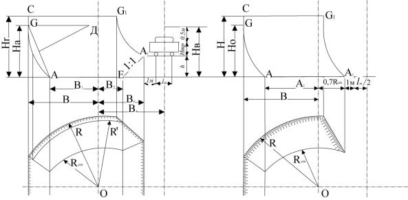 Рис. 3.1. Шаблони бокових забоїв екскаваторних проходок |