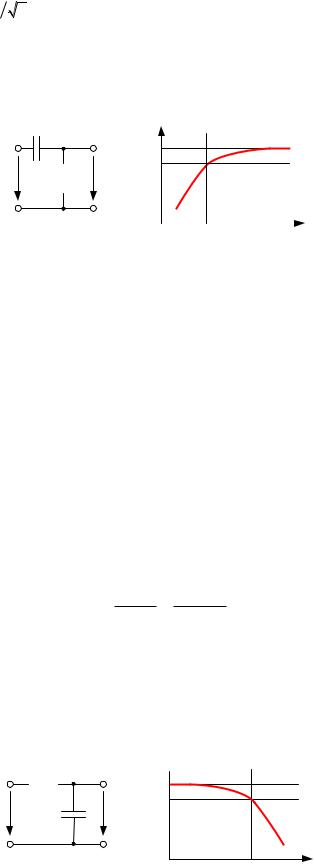 Рисунок 2. Схема и амплитудно-частотная характеристика высокочастотного RC-фильтра В этой схеме входное напряжение прикладывается и к резистору, и к конденсатору.