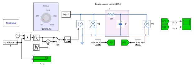 Рисунок 4. Реализация RC-фильтра нижних частот в MATLAB/Simulink