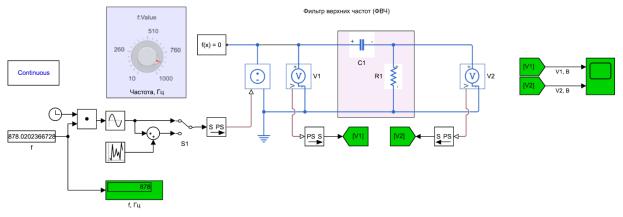 Рисунок 5. Реализация RC-фильтра верхних частот в MATLAB/Simulink
