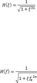При этом реальную амплитудно-частотную характеристику разрабатываемого фильтра можно получить, умножив нормированную частоту ξ на частоту среза фильтра. Для фильтра Баттерворта нижних частот функция аппроксимации АЧХ будет выглядеть следующим образом: