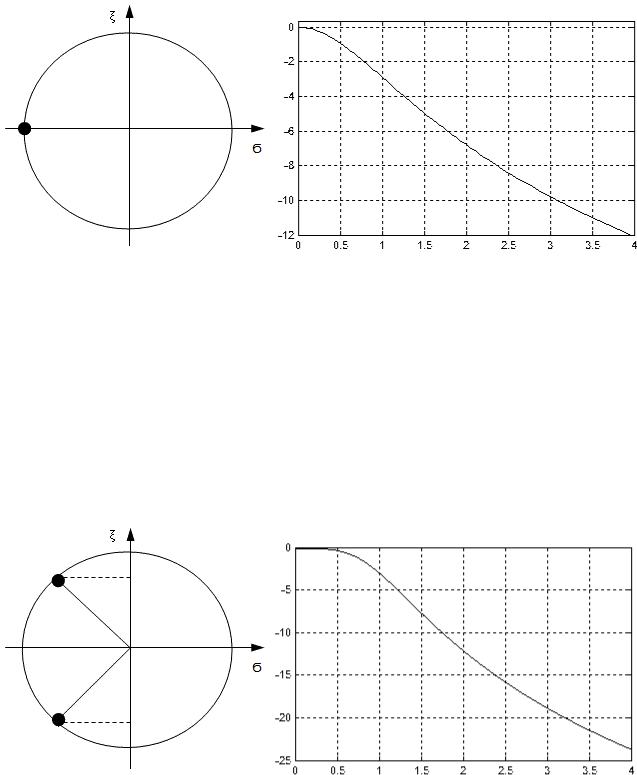 В данном случае резонансная частота полюса расположена недалеко от частоты среза нормированного фильтра. Она равна 0,707. Добротность полюса по графику расположения полюсов в корень из двух раз выше добротности полюса фильтра Баттерворта первого порядка, поэтому крутизна спада амплитудно-частотной характеристики получается больше. (Обратите внимание на цифры в правой части графика. При отстройке по частоте, равной 2, подавление равно уже 13 дБ) Левая часть амплитудно-частотной характеристики полюса получается плоской. Это связано с влиянием полюса, расположенного в зоне отрицательных частот.