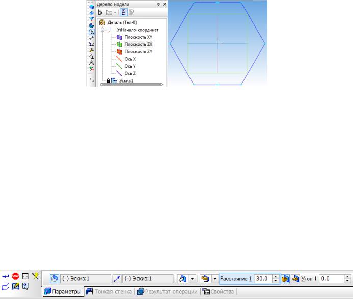 5.Для повернення в режим роботи з деталлю після створення ескізу натиснемо кнопку Ескіз