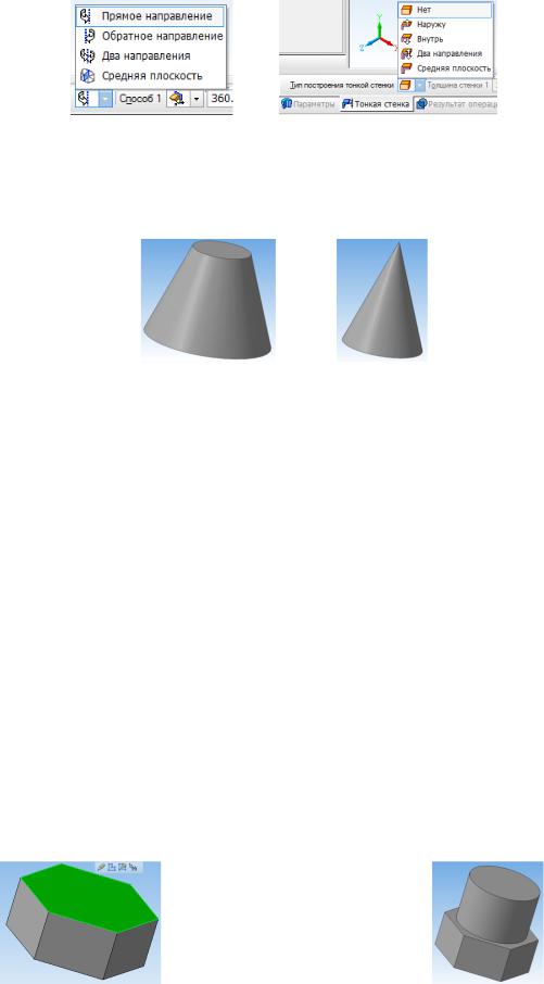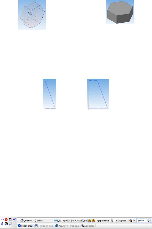 7. Виберемо тип побудови моделі без тонкої стінки за допомогою списку на закладці Тонка стінка на Панелі властивостей команди Обертання (рис. 1.13).