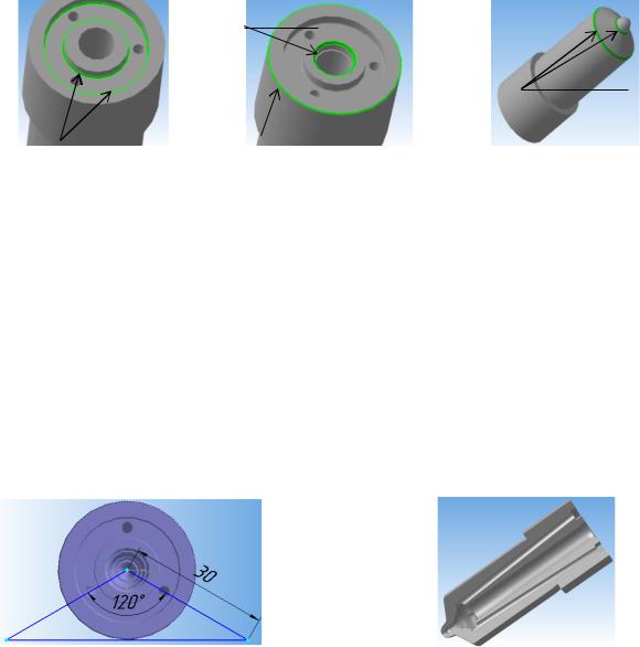 10.Виділяємо грань (рис. 7.7) для побудови Ескізу №5 у формі кола діаметром 24 мм, центр якого повинен співпадати з центром Ескізу №3.