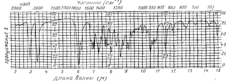 Наявність смуг валентних коливань = С - Н при 3, 3 мкм і коливань в області від 6, 1 до 6, 25 мкм вказує на присутність речовини, що має структуру ароматичного типу. Положення смуг поглинання певної функціональної групи не є постійним в застосуванні до різних молекул внаслідок впливу сусідніх атомів і груп. Наприклад, положення карбоніла, С = 0, при 5, 75-5, 8 мкм, характерно для альдегідів і кетонів; при 6, 0 - 6, 1 мкм - для кислот; при 5, 75 - 5, 85 мкм - для ефірів ; ангідриди мають дві смуги поглинання: при 4, 9 - 5, 05 мкм і при 5, 60 - 5, 75 мкм.