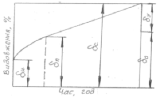 відображають у вигляді первинної кривої повзучості в координатах. Відносне