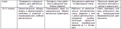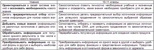 Таблица 1. Общеучебные умения как результат обучения на выходе из старшей школы