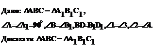BD=B1D1, Ð1=Ð2 (как половины