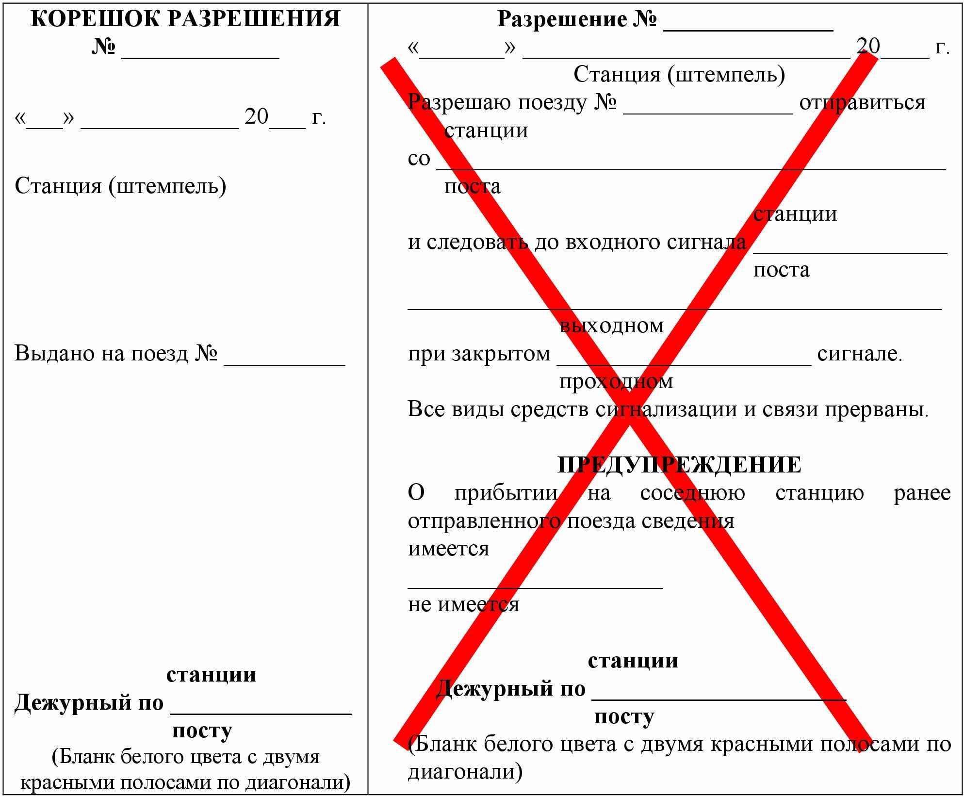ПУТЕВАЯ ЗАПИСКА Станция (штемпель) «____» ________________________________ 20___ г. _______ ч. ____________ мин. Разрешаю поезду (толкачу поезда) № _________ отправиться с _____________ пути по _____________ пути и следовать до входного сигнала станции _______________________ (до ________________ км) с возвращением обратно. Блокировка не действует. Дежурный по станции _____________________ (ненужное зачеркнуть) (белого цвета) |