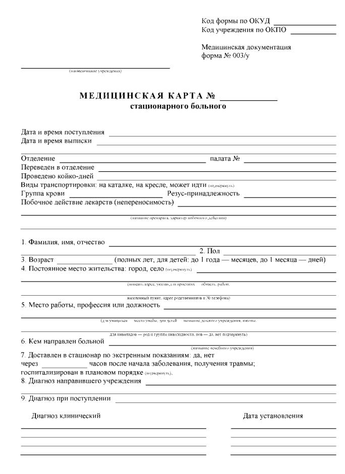 Образец: Медицинская карта пациента, получающего медицинскую помощь в амбулаторных условиях