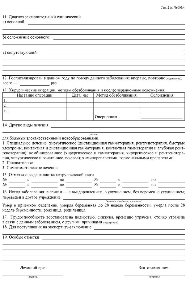 Все последующие врачебные осмотры должны быть четкие и легко читаемые, с отражением жалоб пациента, объективных данных и динамики состояния больного. Осмотр заведующим отделением проводится один раз в 10 дней. В записи осмотра заведующего отделением указываются: диагноз, рекомендации по обследованию и лечению, сроки выписки больного, подпись с расшифровкой заведующего отделением.
