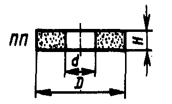 Наиболее широкое применение из выпускаемых шлифовальных кругов имеют круги прямого профиля ПП. Их применяют для круглого, наружного, внутреннего, бесцентрового и плоского шлифования. При шлифовании отверстий диаметр круга выбирают в пределах 0,7 - 0,9 диаметра отверстия. Бесцентровое шлифование применяют при обработке наружных и внутренних поверхностей.