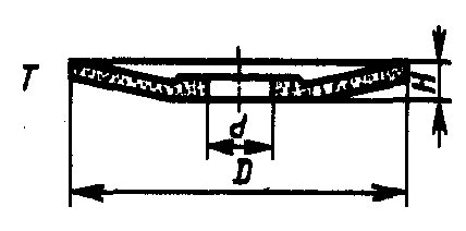 На кругах диаметром свыше 40 мм маркируют товарный знак предприятия-изготовителя, марку абразивного материала, зернистость, степень твердости, марку связки, класс точности. У кругов диаметром свыше 250 мм дополнительно указывают размеры круга (D H d), структуру, рабочую скорость, на которой может работать круг, класс неуравновешенности. Маркировку кругов диаметром до 40 мм наносят на упаковке.