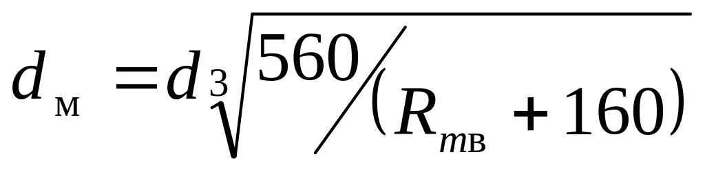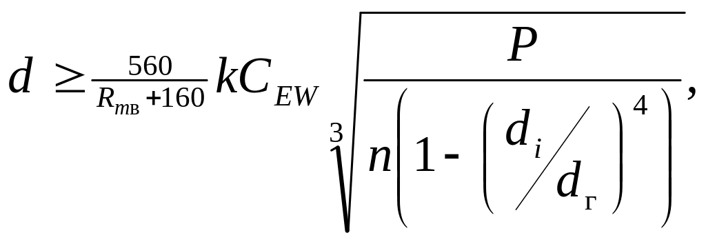 Во всех случаях временное сопротивление в формуле должно приниматься не более 800МПа для промежуточного и упорного валов и 600 МПа для гребного вала.