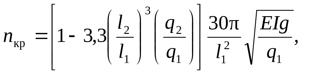 Критическую частоту вращения валопровода, при которой возникают предельные поперечные колебания вала, подсчитывают по эмпирической формуле Бринелля, мин-1: