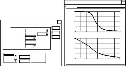 Результаты выполнения команды «AC Frequency …» приводятся в окне «Analysis Graphs» в виде ненормированной ам- плитудно-частотной (верхняя кривая) и фазочастотной (ниж няя кривая) характеристик (рис.5,б).