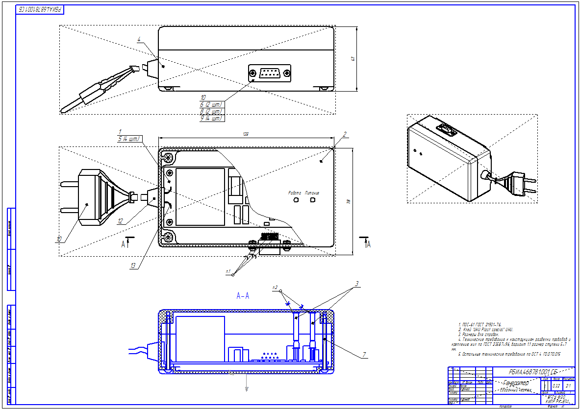 На рис. 5.6 представлен внешний вид чертежа печатной платы, на 5.7 сборочного чертежа платы, чертежа корпуса на рис. 5.8, чертежа крышки на рис. 5.9, сборочного чертежа изделия на рис. 5.10.