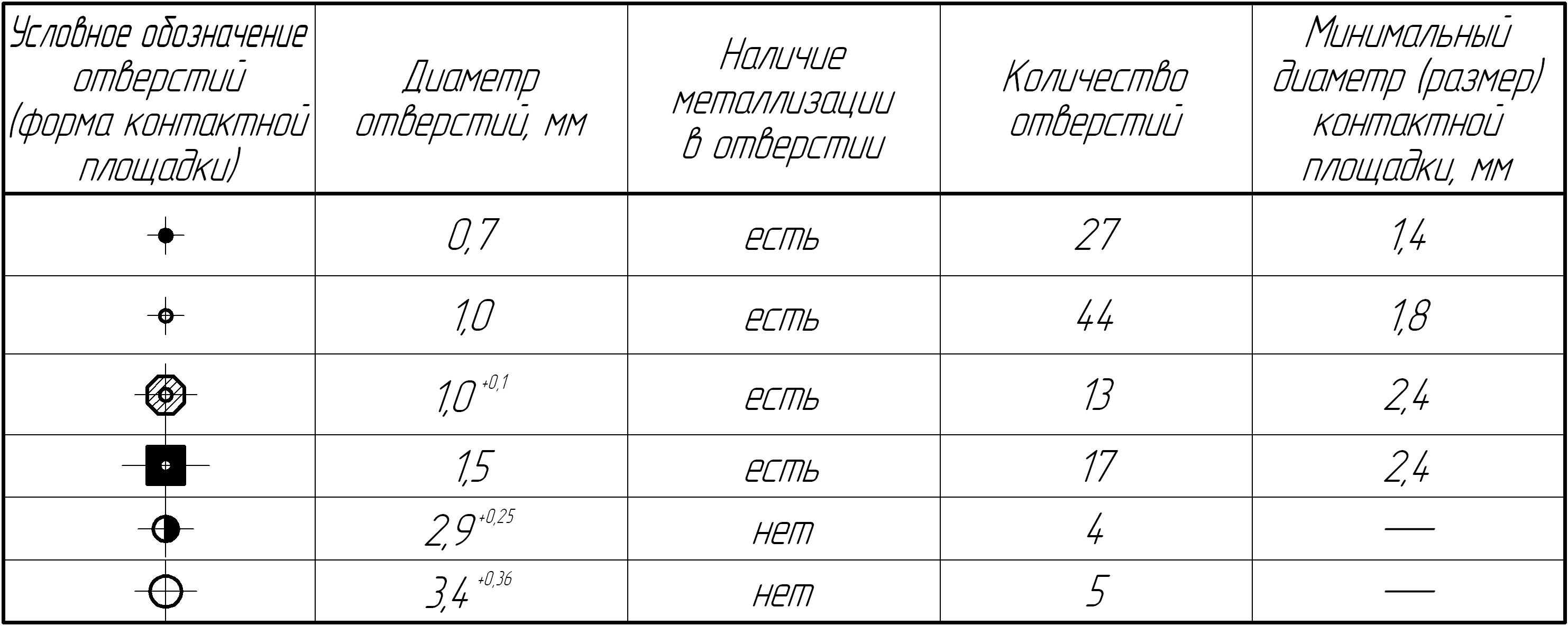 Рис. 5.5. Таблица параметров отверстий
