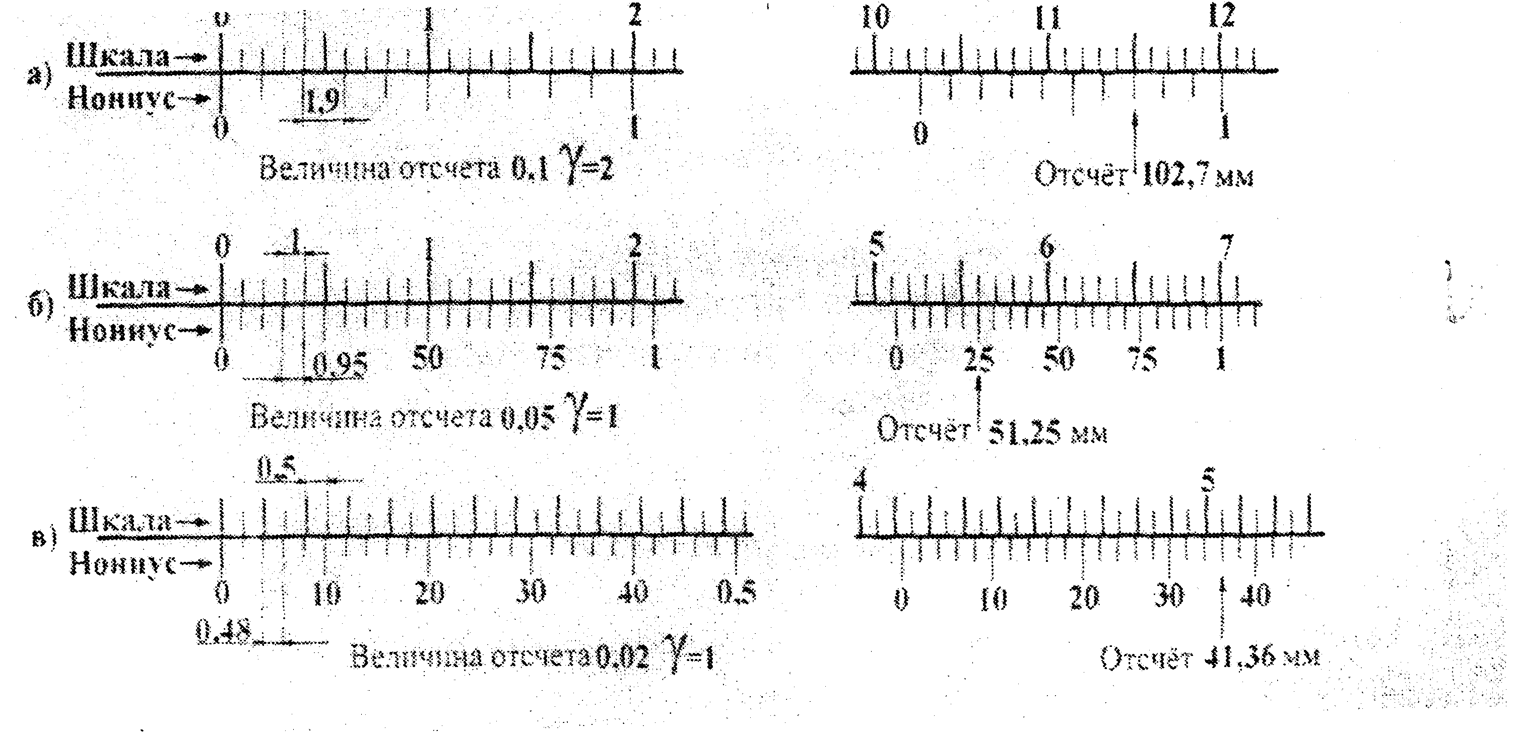 Рис.1.3. Нониусы штангенинструментов