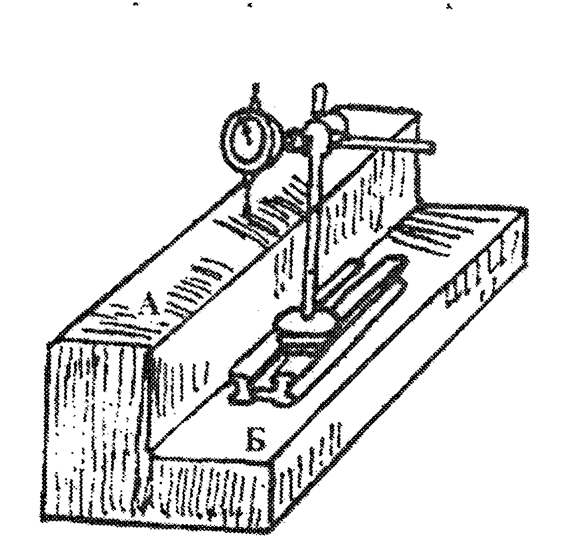 На рис. 3.5 показано применение штатива для отклонений от параллельности поверхностей А и Б, перемещая штатив по поверхности Б, наблюдают за изменением показаний индикатора, стержень которого