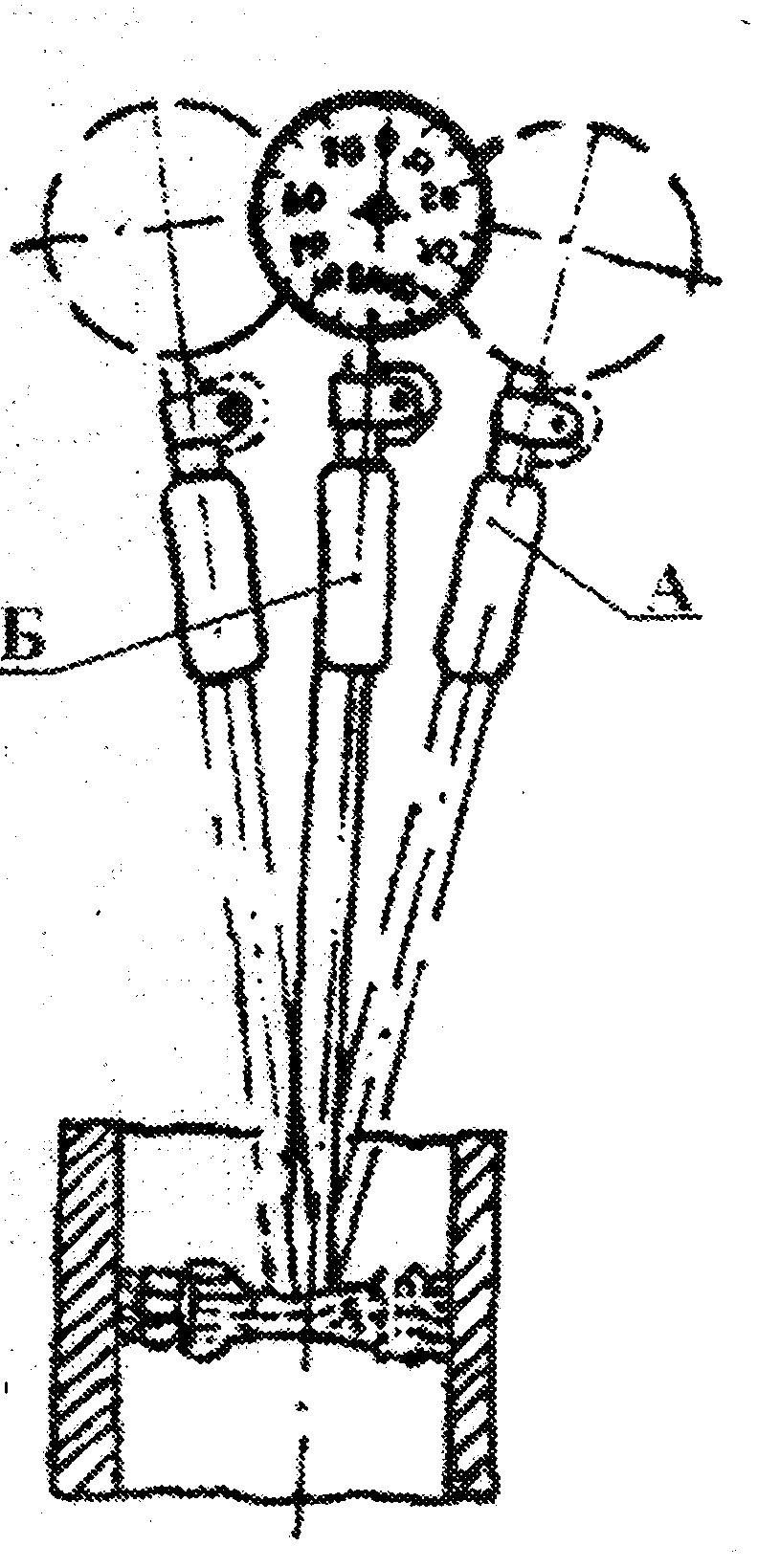 Для установления реальной формы изношенных гильз их необходимо измерить в нескольких сечениях и в двух взаимно-перепендикулярных плоскостях. Сечение выбирается следующим образом: а-а в верхней, изношенной части; б-б в зоне наибольшего износа (это в 15-20 мм от верхней части гильзы); в-в и другие сечения через 40-50 мм друг от друга. Всего намечается 7 сечений в двух плоскостях А-А и Б-Б рис. 3.11.