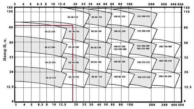 необходимый для данной сети составлял не 81,6 м, а 70,0 м, то следовало бы выбрать насос 65-40-25в.