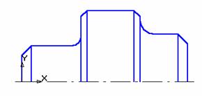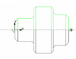 3. Проведите осевую линию. Для этого активизируйте команду Ввод отрезка. Щелкните мышью на поле Стиль на строке параметров. Выберите текущий стиль линии – Осевая. Установите шаг курсора – 1. Установите курсор в начало координат. Переместите курсор на 3 шага влево и нажмите [Enter] (осевая линия выступает за контур детали не более 3 – 5 мм). Мышью переместите курсор в правую часть детали, переместите курсор на 3 шага вправо, нажмите [Enter] – осевая линия построена, рис. 15.