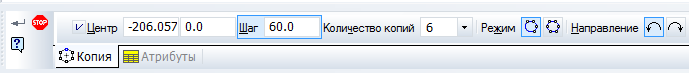 5. Установите параметры копирования по окружности (количество копий 6, равномерно по окружности (шаг 60). В ответ на запрос системы Укажите центр копирования по окружности зафиксируйте центр окружности (в данном случае – это начало координат). Нажмите Создать объект, затем Прервать команду.