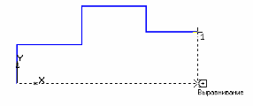 2. Активизируйте команду Непрерывный ввод объектов. Установите курсор в начало координат. Начальная точка зафиксирована. В данном случае проще строить, установив шаг курсора равный 5 (т.к. все линейные размеры кратны 5). Переместите вверх курсор 3 раза (15 мм), вправо 6 раз (30 мм), вверх 3 раза (15 мм), вправо 5 раз (25 мм), вниз 2 раза (10 мм), вправо 5 раз (25 мм); щелчком правой кнопки включите локальные привязки и выберите привязку Выравнивание, проведите линию вниз, рис. 1.16. Прервите команду.