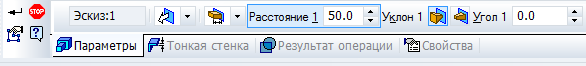 В панели свойств задайте высоту выдавливания 50 мм. Как показано на рис. 2.5.