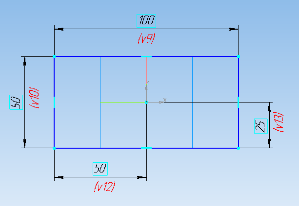 2. Постройте прямоугольник. Оси, определяющие начало координат, должны располагаться в центре прямоугольника.