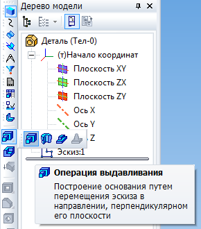 Рис. 2.4. Выбор кнопки Операция выдавливания