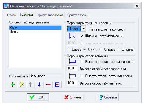 Рис. 7.6. Панель задания стиля таблицы разъема