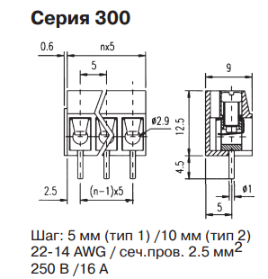 Рис. 9.4. Размеры корпуса клеммника серии 300