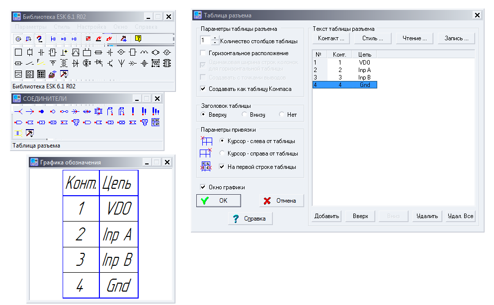 3. Для получения УГО соединителей используется панель отрисовки таблицы разъема (рис. 7.5).