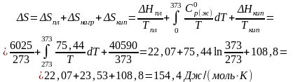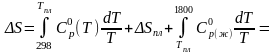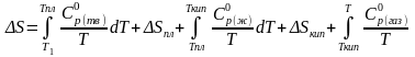 Общее выражение для расчета изменения энтропии при Р = const с температурами плавления и кипения Тпл и Ткип можно записать в виде: